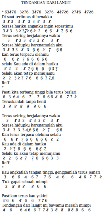 Not Angka Lagu Tendangan Dari Langit Kotak Pianika Recorder