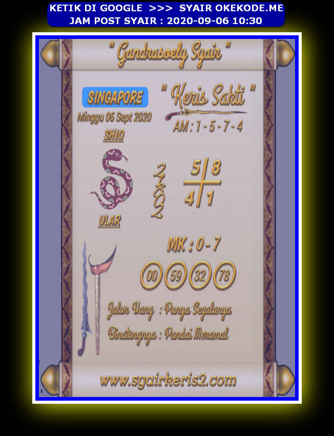 Forum Syair sgp terlengkap dan terupdate, karena kami mengutamakan user pencari syair agar dapat melihat syair secara updatenya tercepat melalui situs syair sdy yang ada disini, gambar - gambar kode syair terjitu dan akurat akan tampil dibawah seperti kode syair sulinkemas, kodok sakti pue baraka nenek kramat stmd brm. KODE SYAIR KAMIS 4 MEI 2023 KODE SYAIR BD TOGEL SINGAPORE HARI INI Prediksi Sgp hari ini 06.5.2023 Angka control : 39720 Nomor Main : 7920 Pola tarung : 2175 vs 4390 Bbfs : 3970 Cad tardal : 35918 Angka jadi top 2d 24*23*29*20 14*13*19*10 74*73*79*70 54*53*59*50 Colok bebas : 30 Colok macau : 93 / 07 Shio main : 5,11 PREDIKSI SYAIR SGP NAGAMAS KODE SYAIR SGP LENGKAP